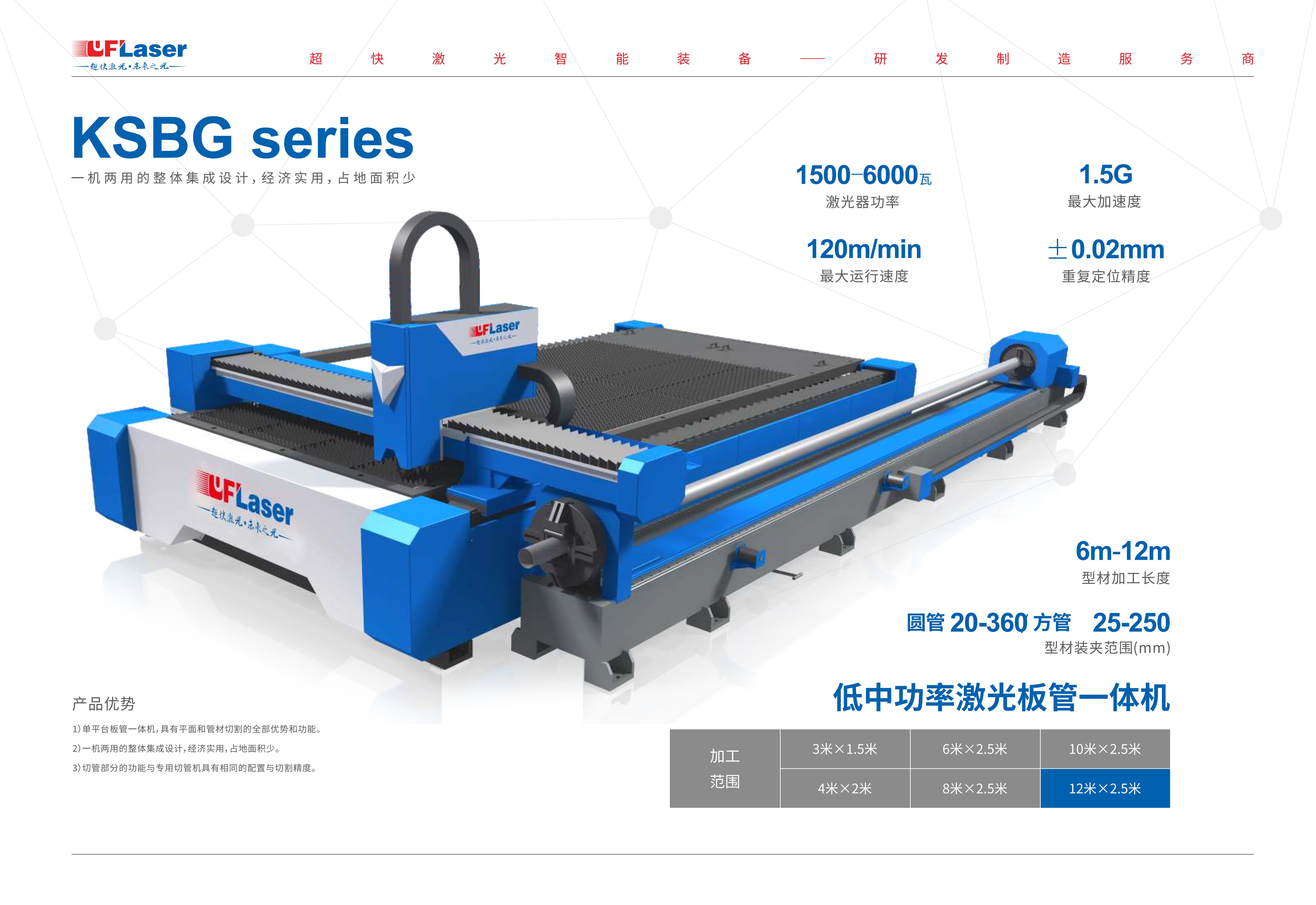 1. 一機(jī)兩用的整體集成設(shè)計(jì),經(jīng)濟(jì)實(shí)用,占地面積少,既可以加工板材又可以加工管材,使用便捷。2.具有獨(dú)特平面切割的全部優(yōu)勢和功能。